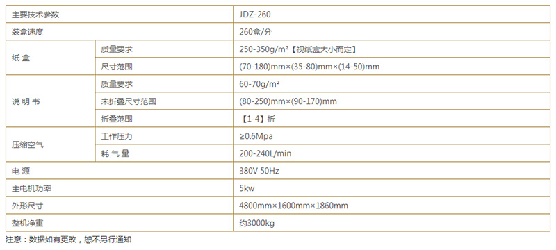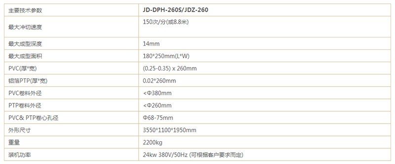 以JD-DPH-260S/JDZ-260 全自动铝塑泡罩/装盒包装生产线为例: