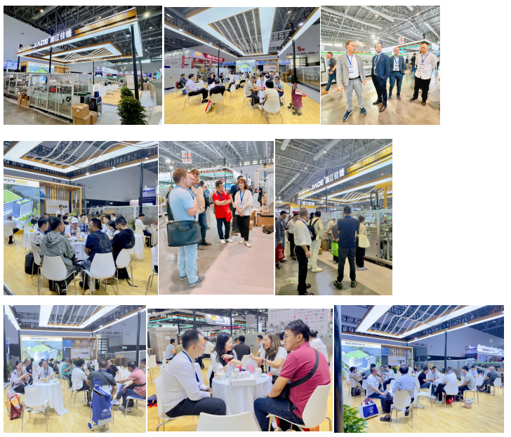 展会现场,浙江佳德包装机械有限公司的展位成为了人气聚集地。众多国内外行业伙伴和客户驻足观看我们的设备演示,并深入了解产品特性。我们的团队以热情和专业的态度,为每一位咨询者提供了详尽的解答,有效地传达了公司的品牌形象和服务精神。
