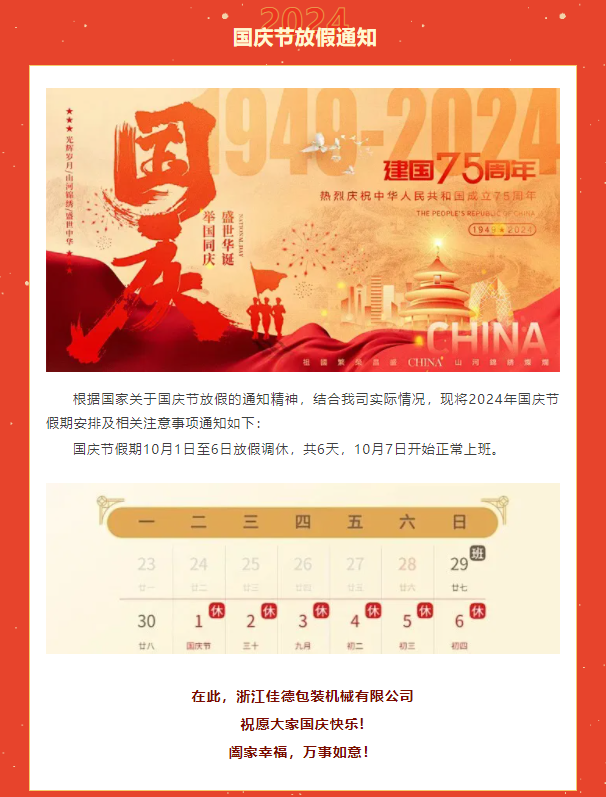 "盛世华诞,举国同庆"——浙江佳德恭祝大家国庆快乐!
