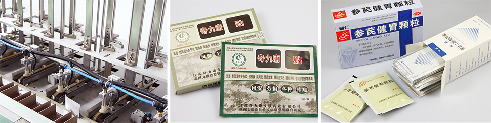 该机型适用于类似袋状物品的自动加料及装盒。在线物料检测、说明书折叠(1至4次折叠)与传送、纸盒吸取成形与传送、物料入盒、压印批号、纸盒两端纸舌封装(也可适用热熔胶)、缺料剔除及成品输出等全过程均属自动完成。